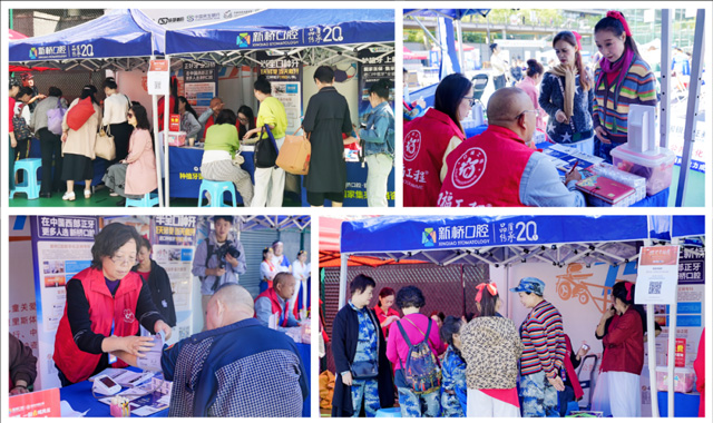 在舞台一侧的种牙口福工程便民服务点,身着红色马甲的志愿者们正为社区居民们进行口腔健康筛查、派送口护礼包。舞台上的音乐声、台下观众的掌声与欢呼声以及此处热闹的交谈声交织在一起,将健康口福融入人民幸福,打造新时代背景下的幸福风向标。
