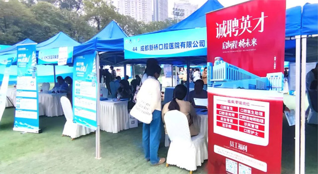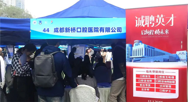 新桥口腔作为央企入股的全国连锁品牌,在西部地区有着二十余年的发展历史,自创办以来就汇集以四川大学华西口腔医学院为核心的专家人才队伍,并广纳国内知名口腔院校的学科精英。每年校园招聘季,新桥口腔都将前往众多国内知名医学院校招聘人才。新桥口腔人力资源部门负责人表示,欢迎华西学子选择新桥,与新桥共同成长。